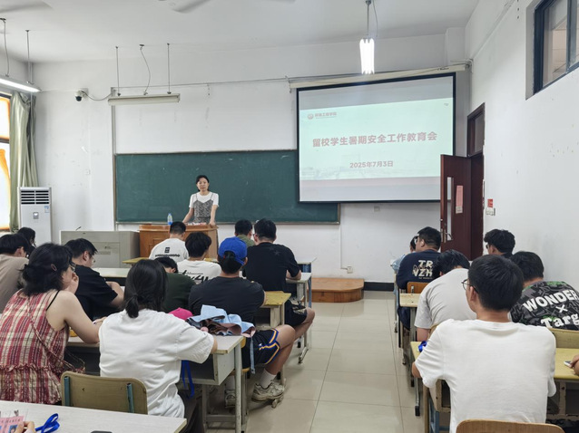 会上,员工科科长庄金鑫首先详细传达了公司暑期留校安全工作的具体要求,针对宿舍用电安全、消防安全、交通安全、食品安全、网络安全、心理健康等多个方面进行了全面部署,旨在全方位构建坚实的安全防护体系。副书记李烨阳从合理规划学习时间、注重安全防范和加强沟通联络等三个方面进行了重点强调。她指出留校学习时间非常宝贵,要合理安排作息时间,确保学习与锻炼劳逸结合;面对暑期复杂多变的天气,务必时刻绷紧安全之弦,在极端天气下严防触电、溺水事故,坚决杜绝野泳行为;要时刻保持信息畅通,遇特殊情况需第一时间与老师联系,并提醒各位同学要经常向家人汇报个人情况。
