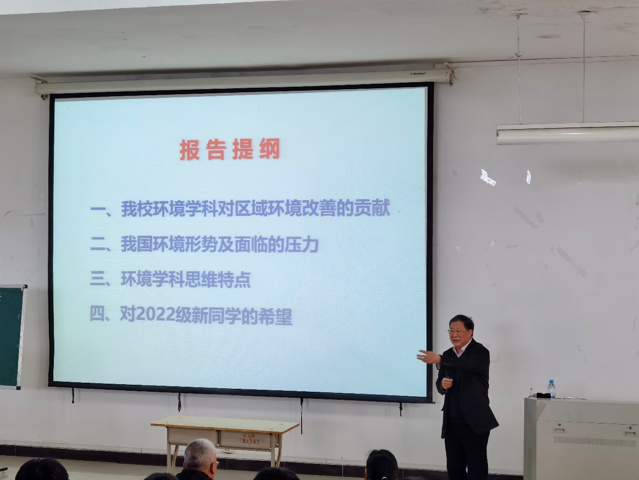 韩宝平教授从公司环境学科对区域环境改善的贡献、我国环境形式及面临的压力、环境学科思维特点三个方面进行了详细介绍和总结,最后对2022级新同学和新教师提出了殷切希望。