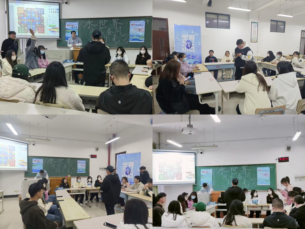 沂水春风,“棋”乐无穷——水环保知识有奖问答活动。为增强同学们的节水意识,丰富大家的环保知识储备,3月22日下午,公司组织开展了沂水春风,“棋”乐无穷——环保知识问答活动。活动以飞行棋的形式进行,大家通过抢答问题,来获得掷骰子的机会,先到达终点者获胜。比赛过程中,主持人在台上发布与环保相关的问题,台下的同学们都聚精会神聆听,积极举手抢答,现场气氛紧张热烈。通过趣味活动,更好的宣传了水文化,普及节水理念。