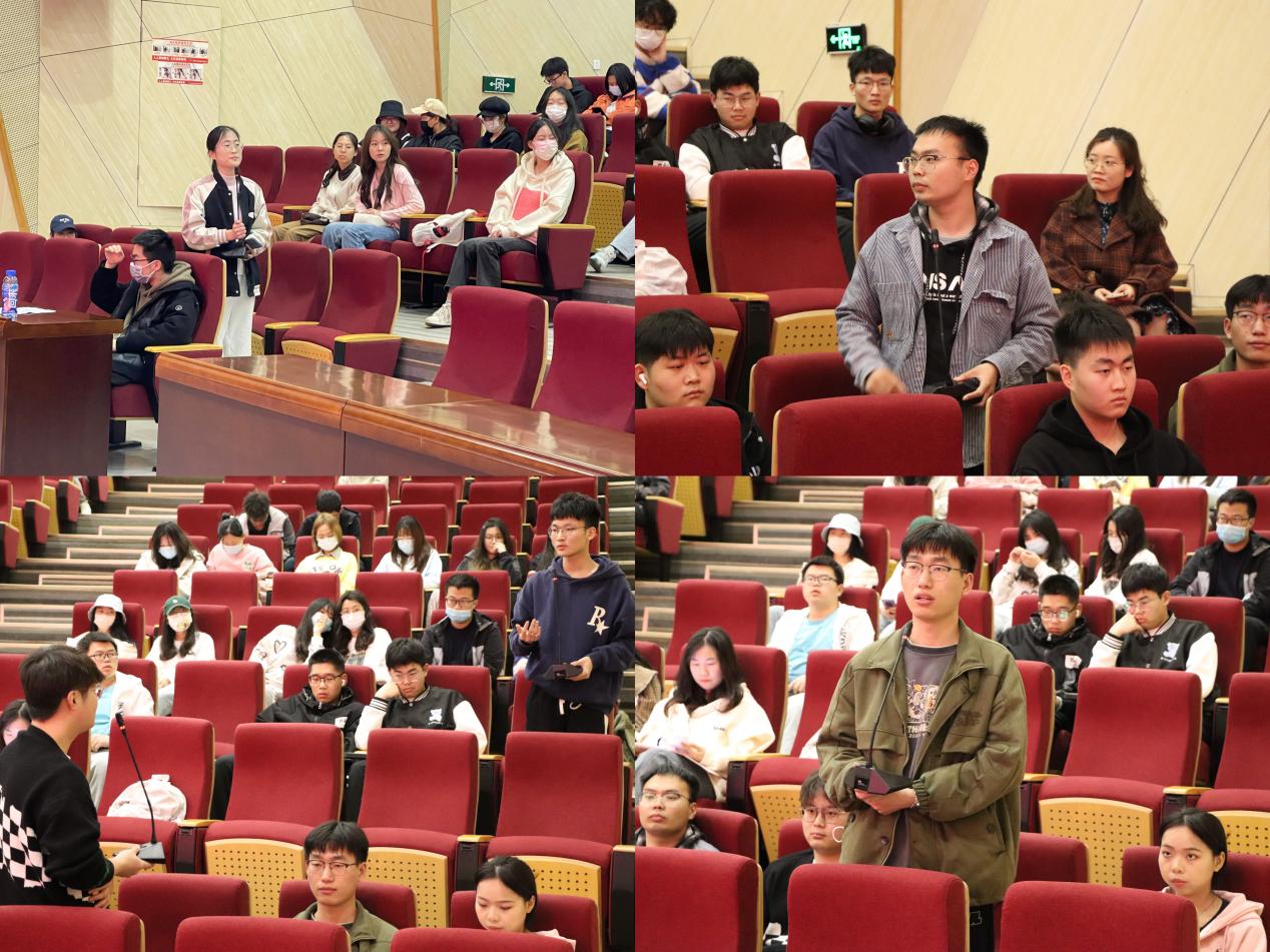在互动提问环节,同学们踊跃发言,提出自己在学习、生活以及对专业的困惑,学长学姐们进行了解答并给出了意见,同学们十分受用,报告会现场气氛活跃热烈。
