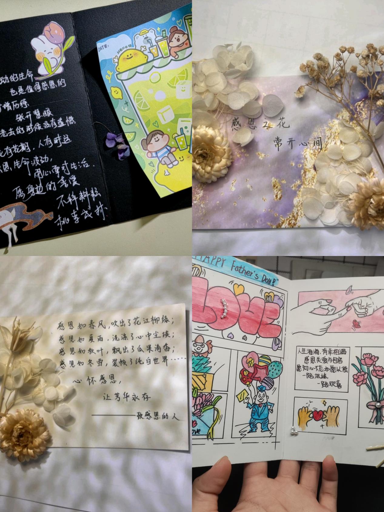 感恩教育活动包括主题班会、光盘行动、约请访谈感恩专题、制作感恩贺卡等多项活动。在主题班会教育环节,辅导员们从学习、生活中的小细节出发,鼓励同学们常怀感恩之心,引导员工发掘生活中的美好,在为人处世方面多一些理解和温暖,多一份责任和担当。老师们以助学金、助学贷款还款、课程作业诚信等作为案例,引导同学们受助思源、心怀感恩、立志成才、诚信做人。在光盘活动中,参与同学每天上传餐前餐后的图片,用“光盘”引领同学们的环保意识,让同学们知晓农民伯伯的辛苦,正所谓“粒粒皆辛苦”。在约请访谈感恩专题中,先由主讲人讲述自己在生活中的温馨故事来引出主题,其次同学们互相分享自己的故事,分享温暖。在感恩贺卡活动中,由外联部向大家分发贺卡,同学们在各自的贺卡上进行装饰,并写出自己对感恩的领悟。