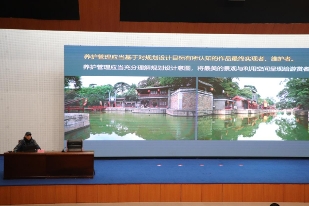 另外,对于园林绿化行业门槛降低、专业弱化等问题,张晓鸣秘书长对此提出了许多独特见解。其次是固本培元,张晓鸣秘书长从不同时期全国人大会议提出的思想理念中,分析了当前园林绿化的发展方向,提出应从人的角度出发,顺应自然、顺应时代,来提高自身专业水平。最后则是立足本业,张晓鸣秘书长提倡我们要利用时代工具、科学知识,推陈出新。要以人类为主体,养护管理园林绿地,来满足主体需求。