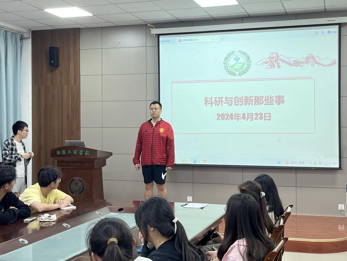 应邀请,公司在科研创新上突出的戴欢涛和徐浩亮为同学们分享经验。活动伊始,徐浩亮为同学们科普了科研创新的重要性,建议同学们积极参加科研创新活动,为工作和升学打基础,随后展示了他们在科研创新中的一些小成就,激励同学们要敢于表现自己、充实自己、突破自己。戴欢涛就文献搜索、科研选题、框架构思、论文发表等分享了自己的经验,提醒同学们保持严谨求实的态度。交流环节,气氛异常活跃。学弟学妹们就科研创新中遇到的问题向学长们请教,得到了耐心的回答。