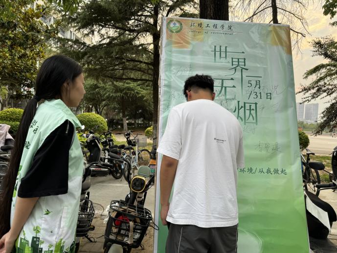 为了进一步推动校园精神文明建设的深入开展,倡导健康文明的生活方式。值第37个世界无烟日到来之际,5月31日,环境公司青协生活部在4号宿舍楼下,以“青春无烟 健康同行”为主题开展世界无烟日宣传活动。