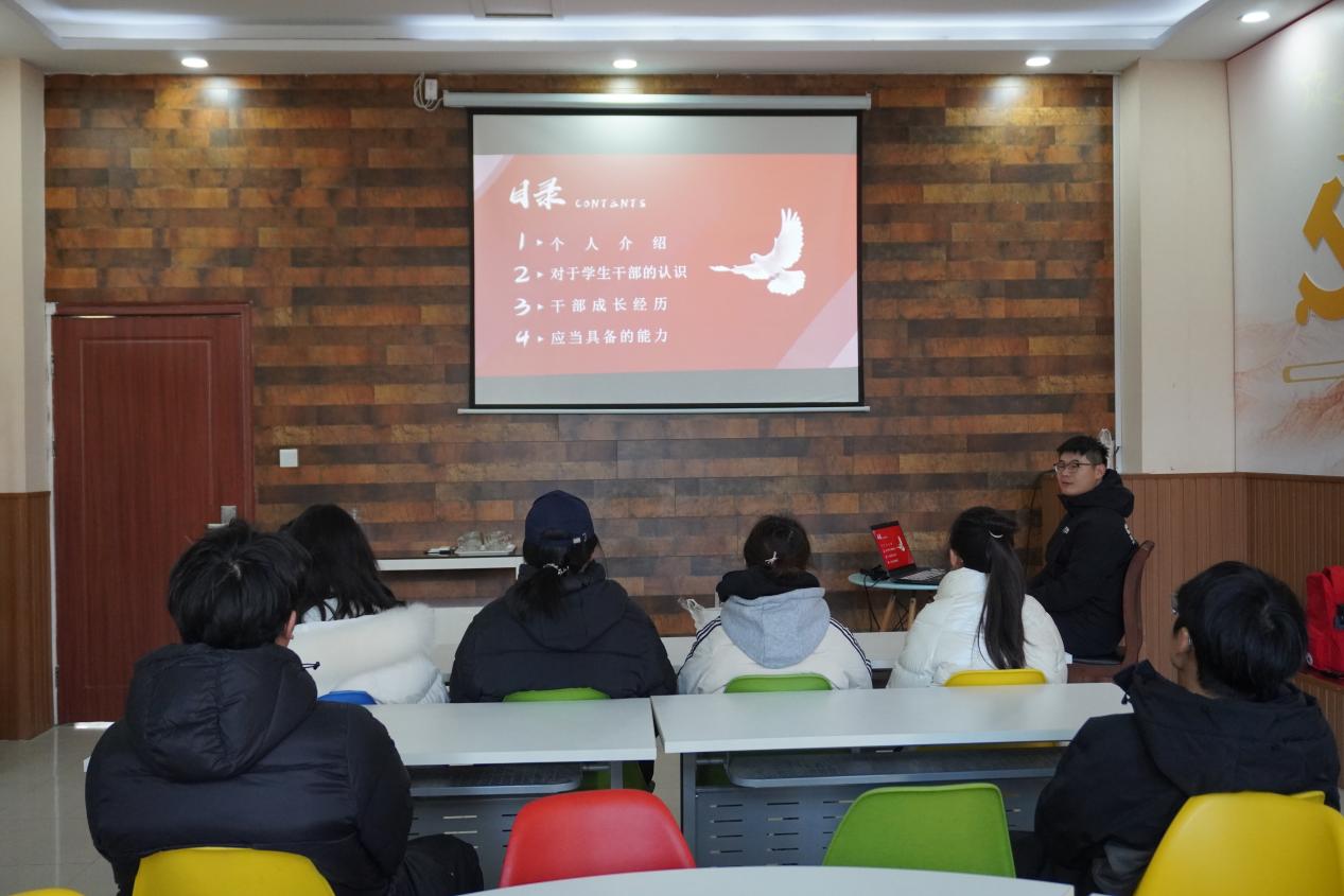 活动伊始,员工干部代表郭凌濛、宋易霏结合自身经历和工作实际,从“优秀员工干部应该具备的素质”,“如何平衡学习与工作二者的关系”,“怎样成为优秀员工干部”几个方面入手,结合工作实际,谈体会,说感悟,话担当,向同学们分享自己一路走来的点滴经验,他们勉励学弟学妹们要合理规划时间,注重提升专业学习能力和科研实践水平,发挥模范带头作用,在工作中做到大处着眼、小处着手,以身作则,挺膺担当。在随后的问答环节,同学们踊跃提问,就自己在员工工作中遇到的诸多困惑与难题,与两位同学进行了深入的交流。